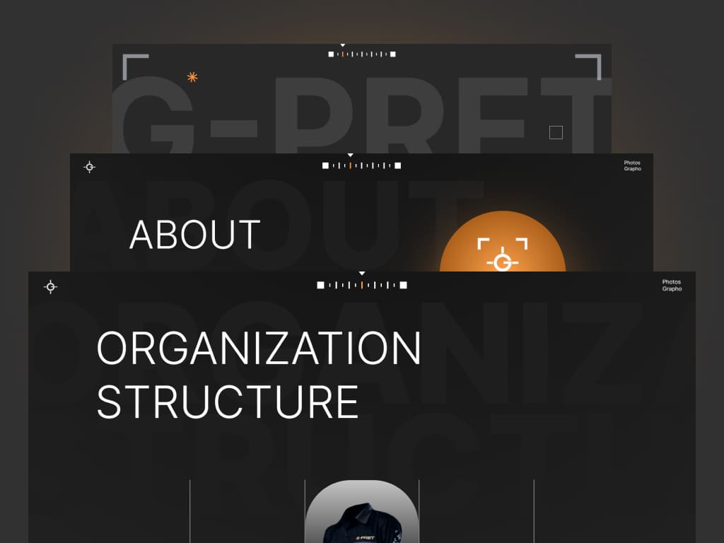 The Website of G-PRET (Gresik Photography Education) organization. It is a static website, designed with interactive animations using gsap. The website's visual concept is inspired by elements related to cameras and photography. This website showcases information, activities, and creative highlights related to the G-PRET organization.